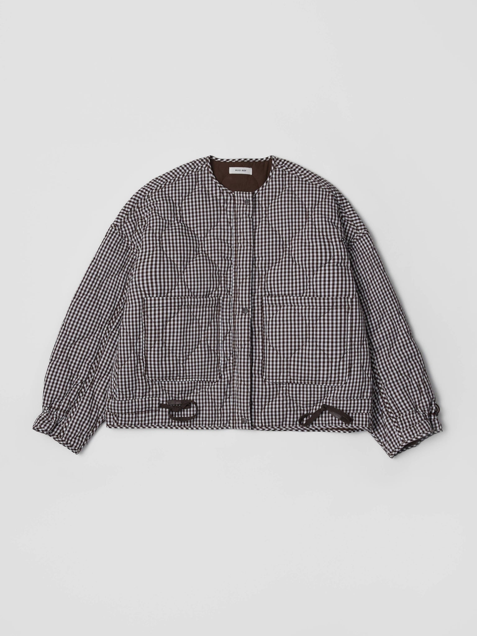 Features: Quilted gingham design Soft, cotton fabrication Full zipper with hidden snap-button placket Adjustable cords at wrist and hem Functional front patch pockets