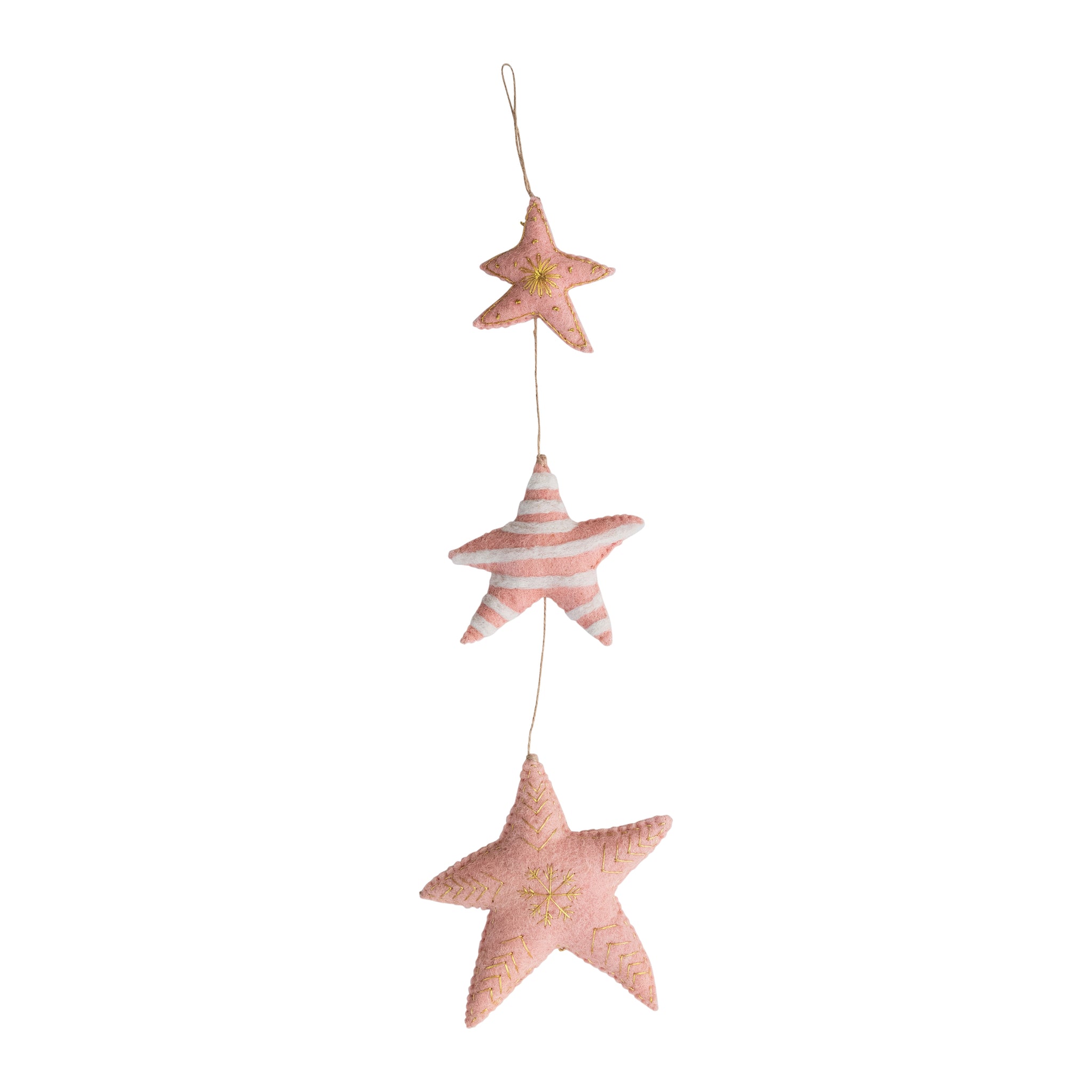 Handmade Wool Felt Stars Hanging w/ Metallic Thread