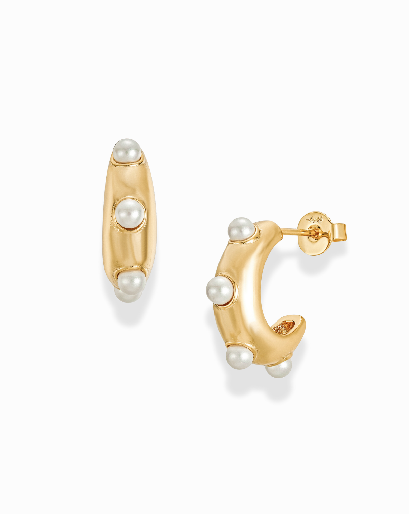 Ready to take your hoop-life up a notch? Peep Hazel. A simple hoop with a series of pearls along the edge. The epitome of femininity and confidence. Don’t let her size fool you, Hazel is easy on the ears. Stack her, wear her solo, there really is no wrong choice.