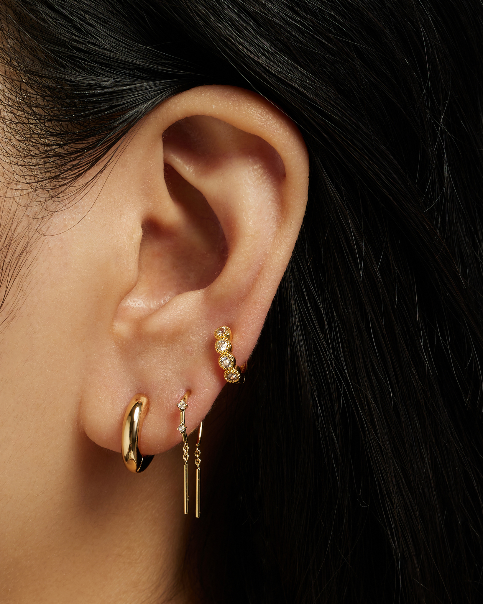 Featuring a sleek and minimalistic design, the Hilary Huggies are perfect for everyday wear, adding a subtle yet distinctive accent to any look. They hug the lobe just right ensuring a comfortable fit, making them ideal for all-day wear without sacrificing on trendsetting appeal.