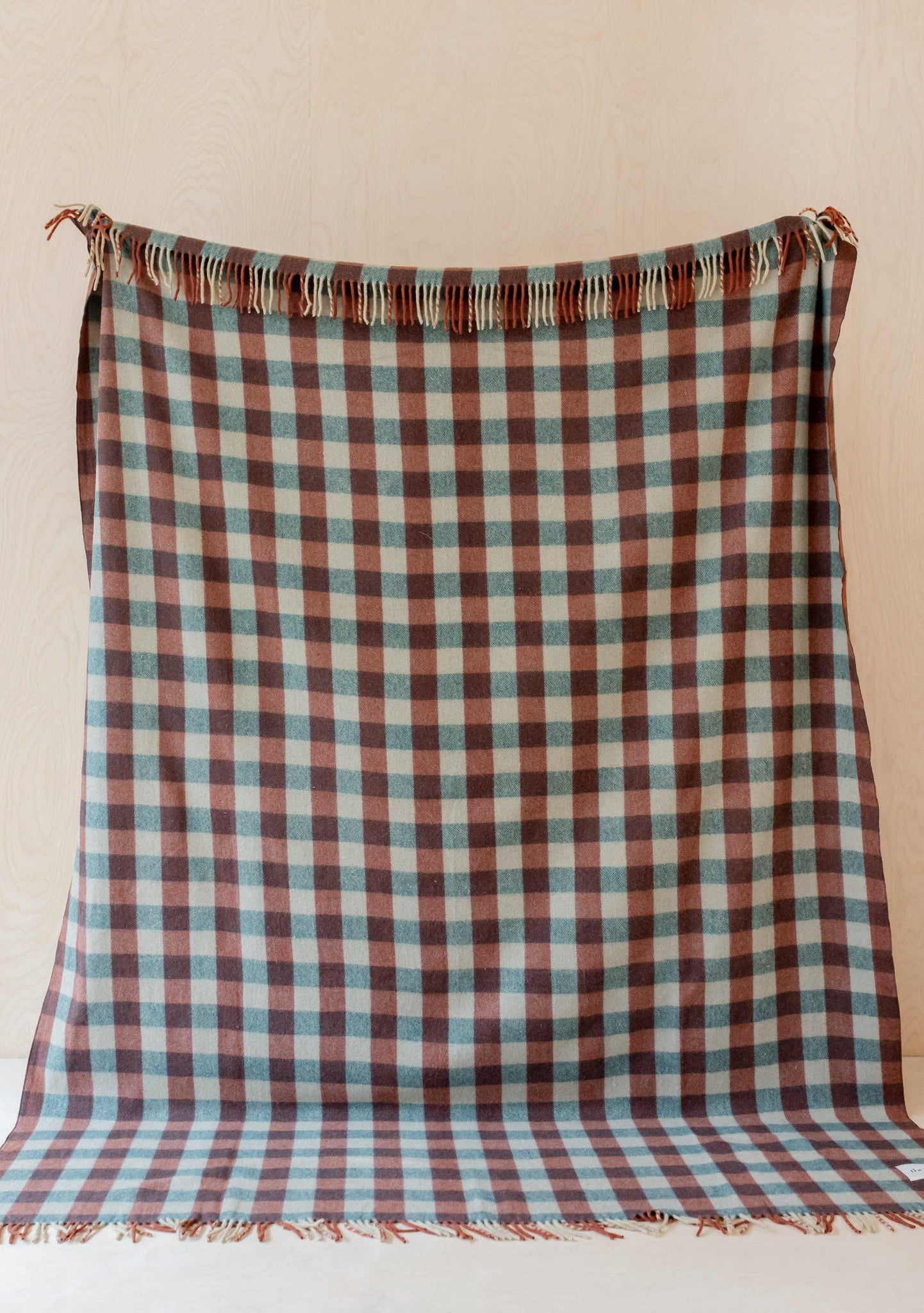 Recycled Wool Extra Large Blanket in Teal Gingham