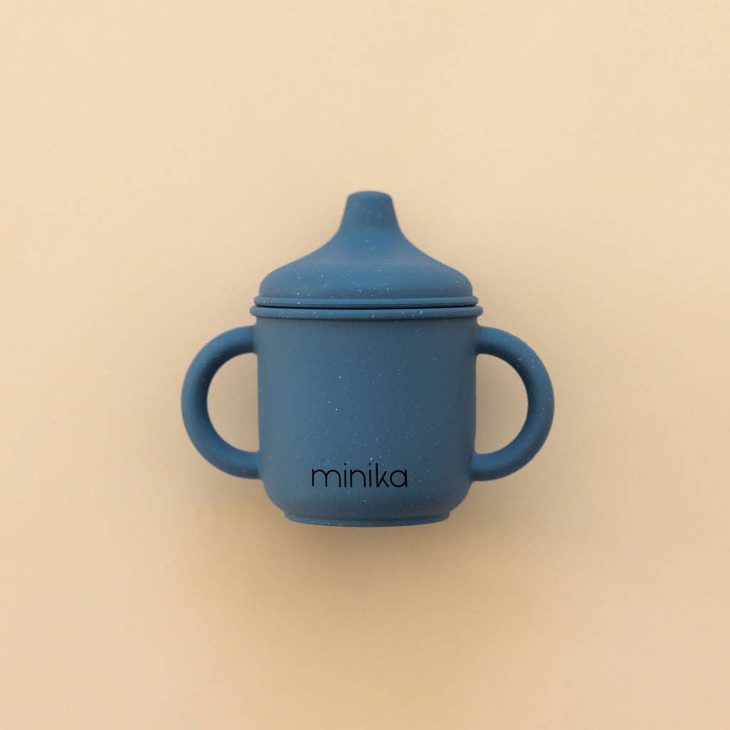 Silicone sippy cup with handles. Made small, ideal for small hands. Food grade silicone free from bpa. Wash with soap and damp cloth or in the diswasher.